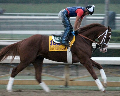 Of the 155 recorded works on Santa Anita's worktab Saturday, a goodly number were by Breeders' Cup candidates getting in their final major licks before next Friday and Saturday, when the 30th Breeders' Cup World Championships unfold at the Arcadia, California, track. Classic contenders Moreno, Mucho Macho Man and Will Take Charge all turned five furlongs on Santa Anita's fast dirt ahead of that 1 1/4-mile contest. The massive five-year-old Mucho Macho Man, who just missed by a half-length when second in last year's running of the Classic, was caught in 1:00 3/5. The bay will enter the race off a 4 1/4-length romp in the nine-furlong Awesome Again on September 28. Will Take Charge captured the Travers and Pennsylvania Derby by a nose and 2 1/4 lengths, respectively, over Moreno in the duo's past two races. The D. Wayne Lukas-trained chestnut sped five furlongs in :59 2/5 while Moreno turned the same time in a bullet :59 1/5. Fog obscured Will Take Charge's work, but private clocker Bruno DeJulio was able to time the drill. He reported splits of :12, :24 and :35, with a six-furlong gallop out in 1:13 3/5. Grade 2 queen Authenticity, runner-up in the Personal Ensign Handicap and Zenyatta in her past pair, blitzed a co-bullet half-mile in :46 1/5. The lightly raced six-year-old mare will face a small field when she lines up in the Distaff on Friday.