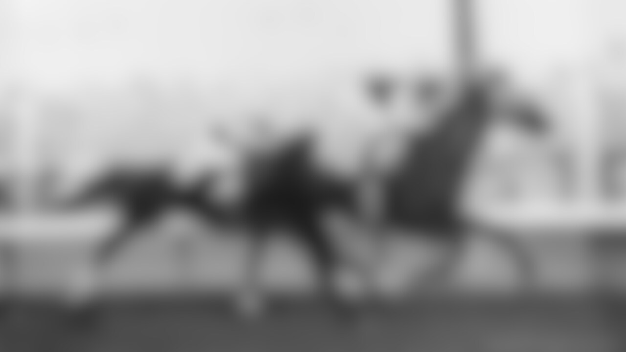Up ahead, the 36-1 Palestinian made a short lead at the eighth pole, but gobbling up ground on the outside was Noor, who worked his way to the front inside the final sixteenth and was drawing away at the finish to win by a length. The final time was 1:59.80, the sixth track record set by Noor that season.