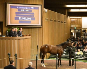 The numbers for the boutique Book 1 reflected the strong trade. Keeneland reported that 95 yearlings realized $54,175,000, producing a $570,263 average and a $500,000 median. A comparison to the first session of the three-day Book 1 from a year ago wouldn’t be apposite, given the change in format, but the results could hardly have been more positive. On the Monday opener in 2016, 108 horses (from a larger catalog of 202) grossed $34,531,000, with a $319,731 average and a $267,500 median.