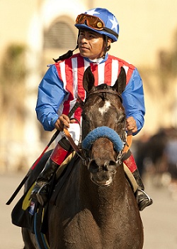 Fed Biz, once a 2012 Kentucky Derby contender before being sidelined, is now two-for-two on the Del Mar Polytrack. His previous success came in the one-mile El Cajon last August in his comeback from a six-month layoff. His fall campaign featured a third in the Indiana Derby, but he failed to perform up to that level when eighth in the Breeders' Cup Dirt Mile and a sixth in the Malibu. Regaining his form in the January 12 San Fernando at Santa Anita, Fed Biz was all heart when battling to a narrow decision over Tritap and Guilt Trip. After a third to stablemate Guilt Trip in the February 2 Strub, he switched to Santa Anita's turf, placing third in the March 2 Frank E. Kilroe Mile and a near-miss second in the April 6 Thunder Road. Fed Biz reverted to dirt for the May 27 Metropolitan Handicap, winding up a well-beaten fifth at Belmont Park, and went back to turf in the Eddie Read. A $950,000 Keeneland September yearling purchase, Fed Biz has now bankrolled $540,496 from his 14-5-1-3 line. The bay colt was bred in Kentucky by Colts Neck Stables. Fed Biz is out of the stakes-winning Wild Again mare Spunoutacontrol, whose first registered foal, Spun Silk, scored a stakes victory in 2005. He hails from a star-studded female line, as his second dam is the winning Mr. Prospector mare Yarn. She is best known for producing Grade 1 victor and noted sire Tale of the Cat; Irish champion and English highweight Minardi; and Myth, the dam of U.S. and European champion Johannesburg, who would also go on to become a top sire.