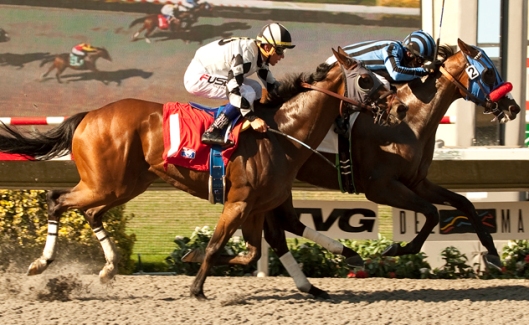 Good Friends Stable's Private Zone held off Ain't No Other to wrap up the undercard stakes action in the $105,050 Pirate's Bounty for trainer Doug O'Neill. The Macho Uno gelding also continued the trend of front-running winners when completing six Polytrack furlongs in 1:09. Ain't No Other was quickest from the gate from the rail post, but it didn't take long for Martin Pedroza to get Private Zone in front. The duo proceeded to clock a quarter in :22 3/5, the half in :45 1/5 and five furlongs in :57 while under pressure. Ain't No Other, meanwhile, was biding his time down on the inside and angled out for the stretch run. The Jerry Hollendorfer charge put forth a game effort but just could not collar Private Zone, who held by a neck on the line. The bay four-year-old returned $8.60 to win as the 3-1 second choice.