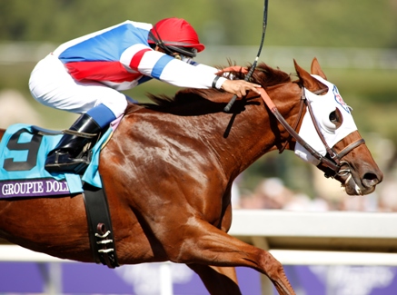 Whisper Hill Farm's newly-acquired reigning champion female sprinter Groupie Doll is now being pointed for the Grade 1 Cigar Mile against the boys to be run November 30 at Aqueduct. "When I purchased Groupie Doll, my sole intention was for her to be retired and become a mom," said Mandy Pope, who made the successful $3.1 million bid for the chestnut daughter of Bowman's Band at Keeneland on Wednesday. "However, after spending time with her and speaking with her pervious connections, I felt that she may still want to run a few more races," Pope continued. "I asked Dr. Larry Bramlage to go over her from her nose to her tail and he felt there was no reason for her career to end now. "Everyone who has been around Groupie Doll says she is rounding into the best form of her career and I feel the racing public deserves to see super stars run so long as they are happy and 100 percent sound." The five-year-old mare has arrived in New York and is resting comfortably after her very eventful past couple of weeks, which include not only her trip through the sales ring but a repeat victory in the Breeders' Cup Filly & Mare Sprint at Santa Anita on November 2.