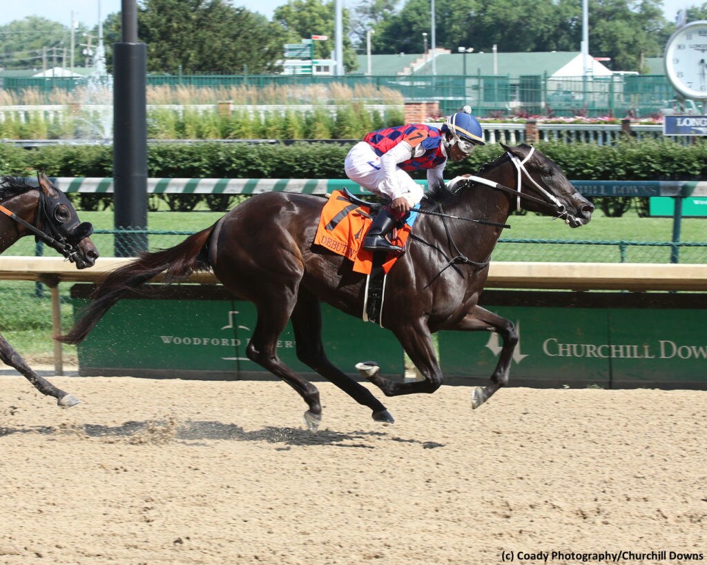 Magic Dance and Ricardo Santana Jr. capture the Debutante Stakes at Churchill Downs on June 29, 2019 (c) Coady Photography/Churchill Downs