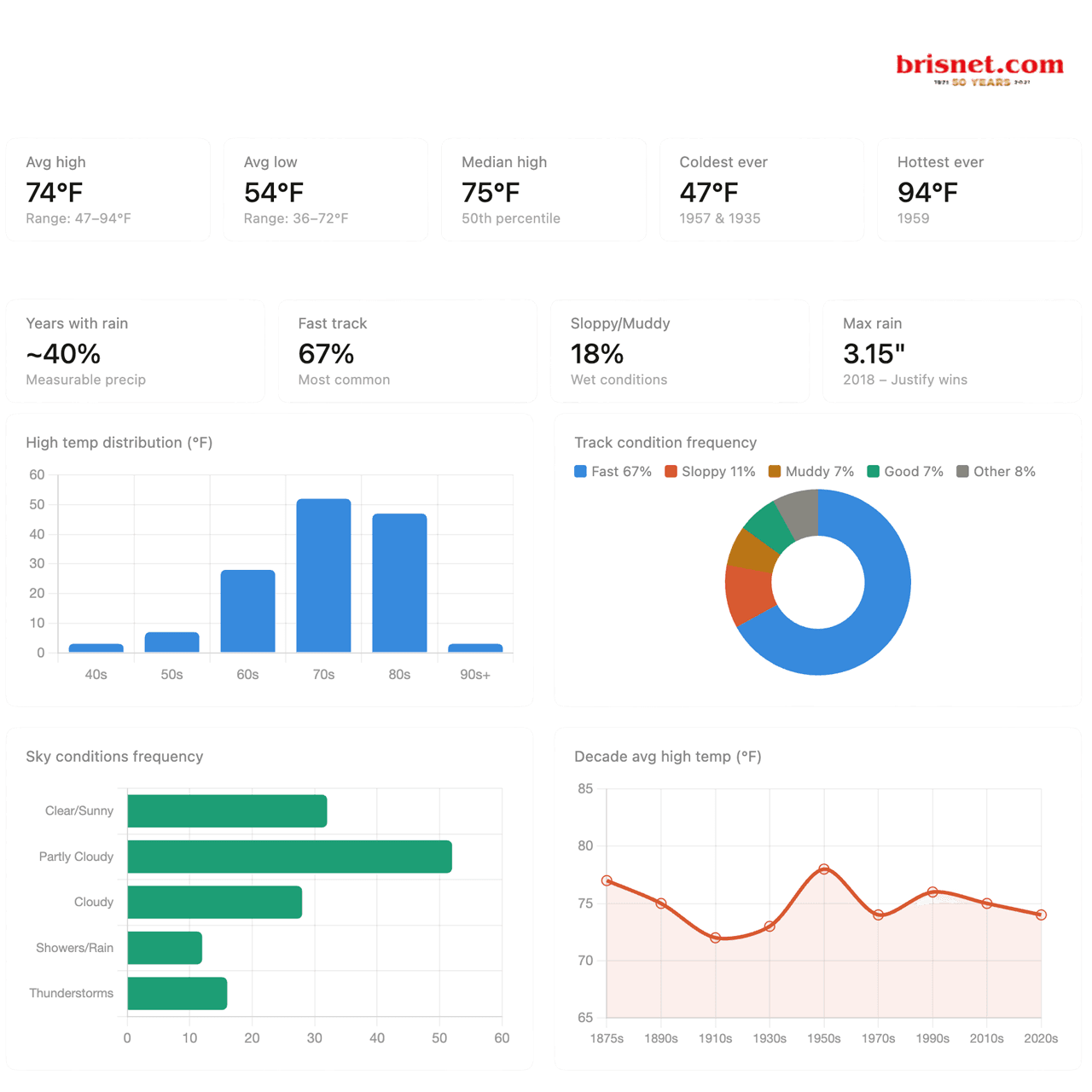 - Don't count on a fast track — about 1 in 3 years produces a muddy, sloppy, or "good" track, which can dramatically change race dynamics
