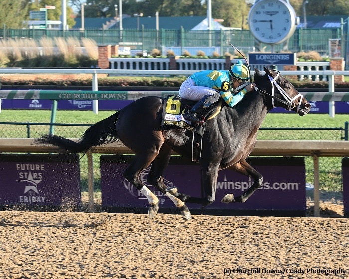 Dunph and jockey Tyler Gaffalione romp in the Spendthrift Juvenile Stallion Stakes at Churchill Downs on October 28, 2018 (c) Churchill Downs/Coady Photography
