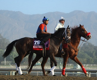 get dirt in his face and wind up in trouble -- but we're here (at Santa Anita)