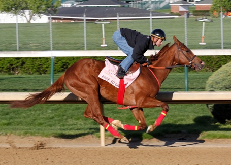 Also working toward a Kentucky Oaks start on Saturday morning was Rose to Gold, who completed the Honeybee/Fantasy double at Oaklawn Park. Working under jockey Calvin Borel, Rose to Gold breezed four furlongs in :48 1/5 and recorded fractions of :12 1/5, :24 1/5 and :36 and galloped out five furlongs in 1:01 2/5. "I'm told she worked really well," trainer Sal Santoro said from his barn at Calder. "The plan right now is to breeze her one more time before the race. We're trying to keep on the same schedule we've used since day one. In the end, though, it's all up to her. She'll tell me what she wants and what she needs." Rose to Gold was purchased as a yearling for $1,400 and has earned $717,889 while under the care of Santoro, who said he was flying to Kentucky on Monday and would be at Churchill Downs on Tuesday morning.