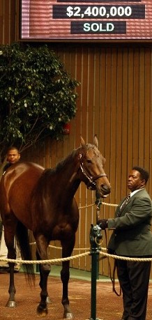 Patrick L. Biancone Racing, agent, went to $1.8 million to secure the session's second highest topper, BARONESS THATCHER (Johannesburg), also from the consignment of Eaton Sales, agent for Zayat Stables. The four-year-old filly was offered as Hip 562. Out of the stakes-placed Natkeeta (Gulch) and a half-sister to stakes winner Interminable Gold (Gilded Time), Baroness Thatcher captured an allowance at Keeneland last month in her most recent start, and currently boasts a record of 21-3-5-4, $531,889. Earlier in her career, the chestnut captured the Santa Ysabel S. (G3) and placed in four Grade 1 events: the Humana Distaff, Las Virgenes S., Ballerina S. and Test S. Eight-times placed in graded stakes overall, Baroness Thatcher is from the female family of the Grade 3-winning half-brothers Duluth (Codex) and Real Courage (In Reality).