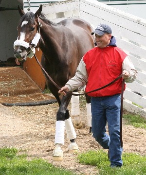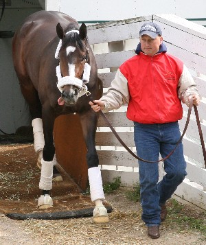 Scott Blasi, Asmussen's chief assistant, accompanied the three-year-old miss on the flight. Blasi led her off the van at 10:20 a.m. and back to the barn, where she was walked and bedded down in Stall 24.