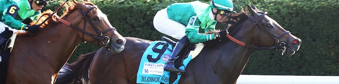 Front-running Blowout bravely fended off stablemate Regal Glory in Saturday’s First Lady S. (G1), extending trainer Chad Brown’s dominance of the Keeneland feature