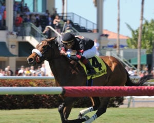 A Woodslane Farm homebred, Sadler’s Joy has bankrolled $1,343,288 from a record of 15-6-1-3. The chestnut had a breakout season in 2017, capturing the Sword Dancer and Pan American (G2) as well as placing in the Manhattan (G1), Man o’ War (G1), Bowling Green (G2), and W.L. McKnight (G3) in his auspicious stakes debut.