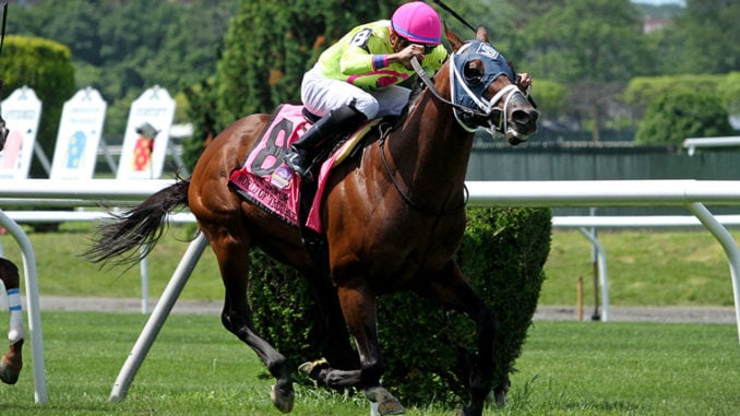 <strong>World of Trouble and jockey Manny Franco win the Jaipur Invitational (G1) Belmont Park on June 8, 2019 (c) EquiSport Photos/Jessie Holmes</strong>