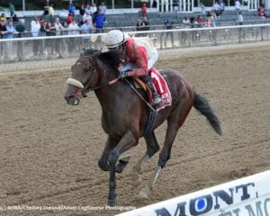 Rocketry and jockey Joel Rosario score in the Temperence Hill Stakes at Belmont Park on September 30, 2018 (c) NYRA/Chelsea Durand/Adam Coglianese Photography