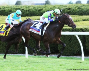 Admission Office (left) won a Keeneland allowance in his 2019 season opener (Coady Photography)