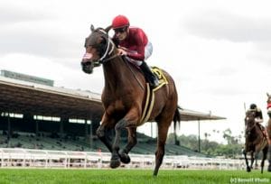 Campaigned by Red Baron’s Barn, Itsinthepost has bankrolled $1,240,707 from a record of 35-10-7-6. The gelded son of American Post was racking up his seventh stakes victory, all at the Grade 2 level. Most recently third as the defending champion in Keeneland’s Elkhorn (G2), the six-year-old has also captured the past two runnings of the San Luis Rey (G2); the 2017 John Henry Turf Championship (G2); and this winter’s San Gabriel (G2) and San Marcos (G2).