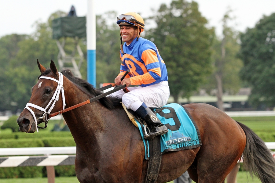 first jockey since Eddie Maple in 1980-81 to win back-to-back Travers.