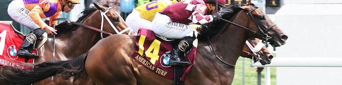 Webslinger got up in a frenetic finish to win the American Turf (G2) on Kentucky Derby Day at Churchill Downs.