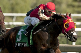 with an up-in-time score in the March 2 Black Gold at Fair Grounds in his turf