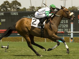 Mark Fiorito et al's SPENDITALLBABY (Unusual Heat) flew home from last to capture the $150,000 B. Thoughtful S. as the 12-1 second longest shot on the board. Also trained by Abrams, the four-year-old chestnut reached the wire in a stakes-record 1:21 to win the seven-eighths affair by one length under Michael Baze. She added a second stakes win to her resume, following a tally in the 2007 Fleet Treat S. She owns seven stakes placings as well, most notably a third-place effort in the San Clemente H. (G2). The winner now sports $417,730 in earnings from a 21-5-4-3 line. The day kicked off when Pamela Ziebarth's homebred TUTTA BELLA (Holy Bull) received a crafty front-running ride from Gomez and held on late to take the $150,000 Fran's Valentine S. Conditioned by John Sadler, the five-year-old mare established moderate early splits of :24 4/5, :48 2/5 and 1:11 4/5 before sprinting home in the 1 1/16-mile turf contest, reaching the wire in 1:41 4/5 while holding on by a neck. A winner of three straight, Tutta Bella came through on her first stakes try to improve her lifetime mark to 10-4-4-0 with earnings of $252,720. Jeffrey Sengara's STELLA MARK (Benchmark) advanced three wide into the stretch and upset his more accomplished foes in taking the $150,000 Claimed for $50,000 from O'Neill four races back, the gelded four-year-old was always in good striking position and won in facile fashion beneath Brice Blanc, stopping the teletimer in 1:27 for 7 1/2 furlongs. The Ted West trainee came through in his stakes debut, upping his bankroll to $261,276 from a 14-5-1-1 record.