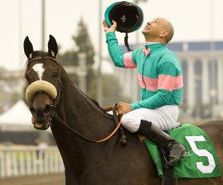 Zenyatta has now captured seven straight Grade 1 events. She began her Hall of Fame career on November 22, 2007, at Hollywood Park, winning by three lengths with David Flores in the saddle. Flores would guide the then sophomore lass through her first allowance condition, which she won by 3 1/2 lengths, and in her stakes and four-year-old bow, the El Encino S. (G2). Smith took over on Zenyatta when she made her first start on dirt, and outside of California, next up in the Apple Blossom. She posted a dominating 4 1/2-length decision that day over then reigning champion older mare Ginger Punch, and has been unstoppable since. Returning to Shirreffs' shedrow at Hollywood Park, the mare reeled off wins in the Milady H. (G2), Vanity, Clement L. Hirsch H. (G2) and Lady's Secret S. (G1) before running away with the Breeders' Cup Ladies' Classic (G1) under a hand ride.