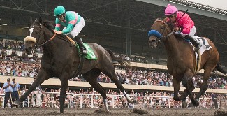 Suddenly, Zenyatta switched gears and was on even terms with St Trinians. The classy mare drew off to be a half-length clear as the pair flashed under the wire to the scream of the masses, stopping the clock in 1:49 over the Cushion Track.